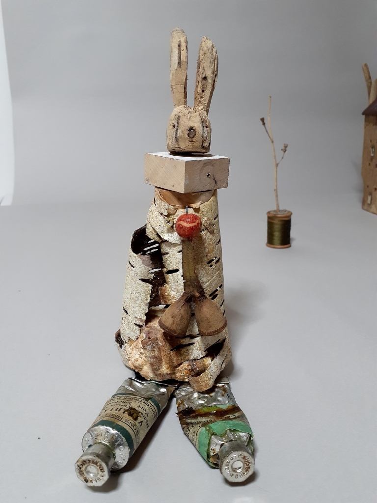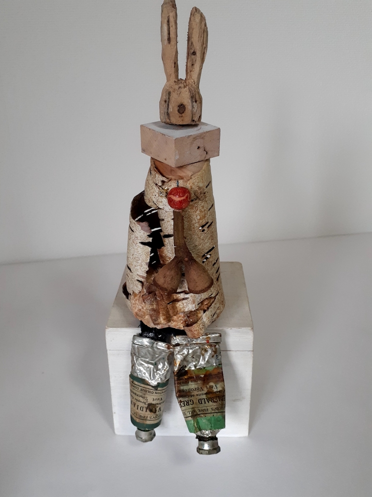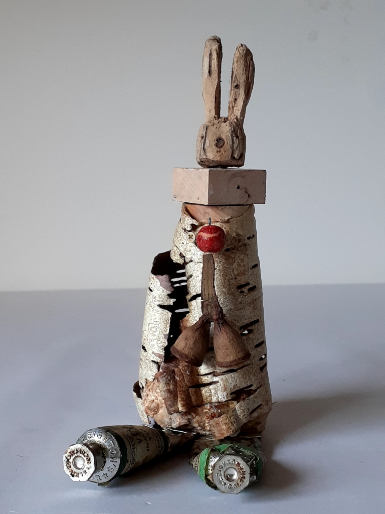 自分では“軽彫刻”と呼んでいます。「見立て」はある物を別のものと仮にみなして表現すること。なぞらえること。