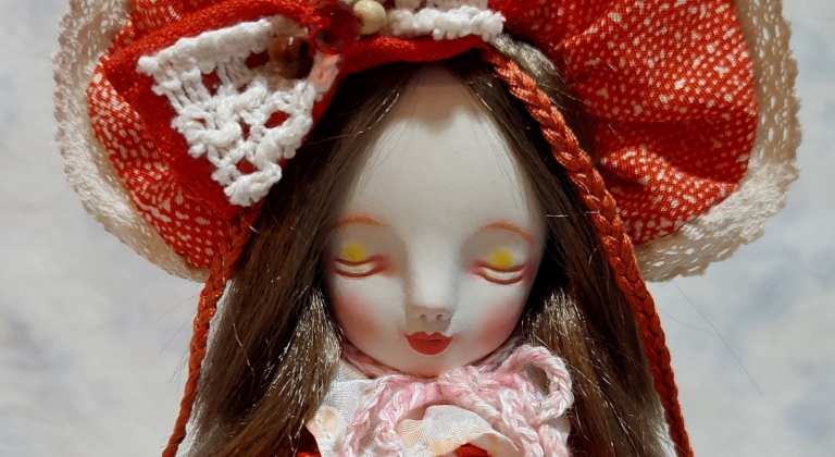 頭部は石塑粘土にアクリルで塗装と彩色をして、パステルも使用しています。クロスボディです。