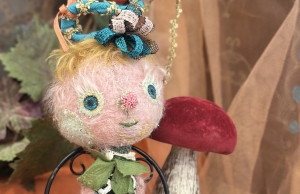 素材 モヘア、ビスコース、リネン、フェイクファー、石塑粘土、アルミ線、ビーズ、